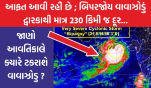 ભારતીય હવામાન વિભાગની અપડેટ મુજબ વાવાઝોડું દ્વારકાથી માત્ર 230 કી.મી દૂર છે. અને …